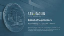 - July 25, 2023 - San Joaquin County Board of Supervisors Meeting