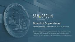 - San Joaquin County Board of Supervisors Meeting 2-1-22